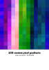 Each gradient is created on a square grid. This grid is between 4x4 and 16x16 pixels. The colour of the first cell is created at random. Each next cell deviates a little bit from that colour: the hue can change a bit, the saturation can go up or down a bit, and so can the lightness. This results in a slow change in colour, which resembles a linear gradient. The thing that struck me in the images that Daan Rongen’s GAN generated, is that every now and then this smooth transition was not smooth at all. I recreated this effect by allowing the next frame to be completely random every now and then. The chances that this happens are not very high.